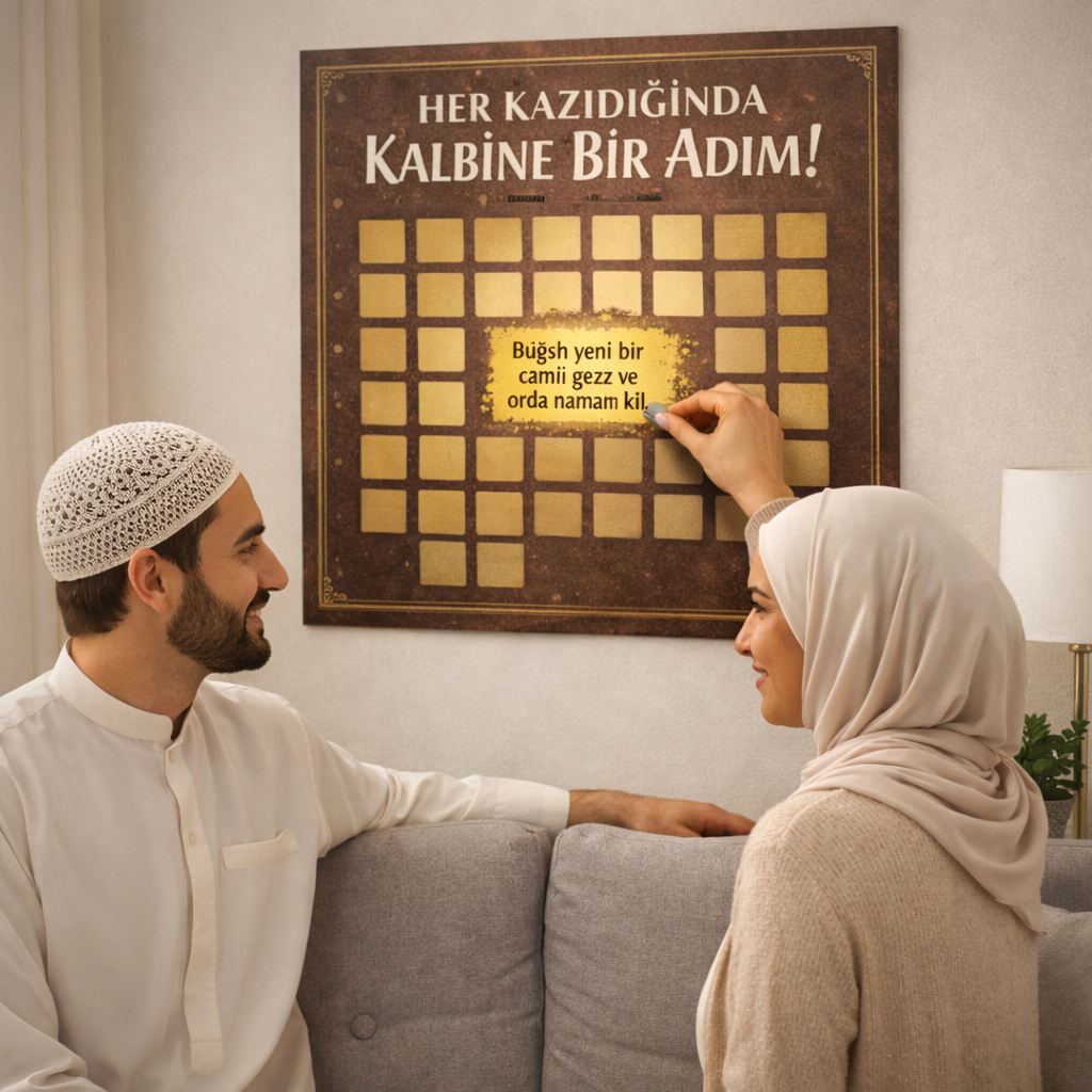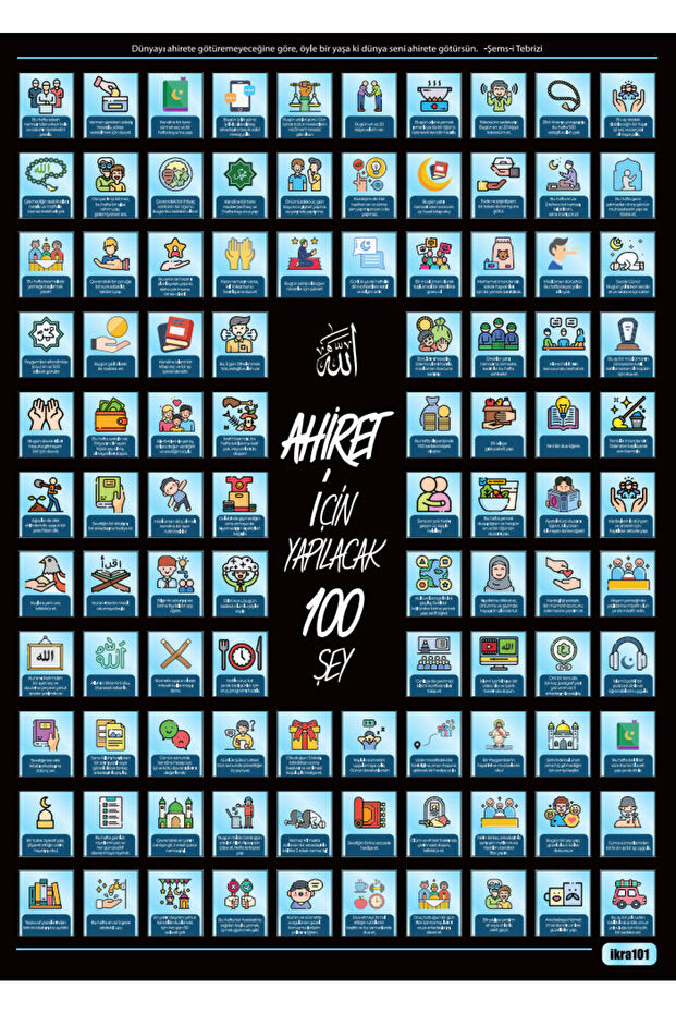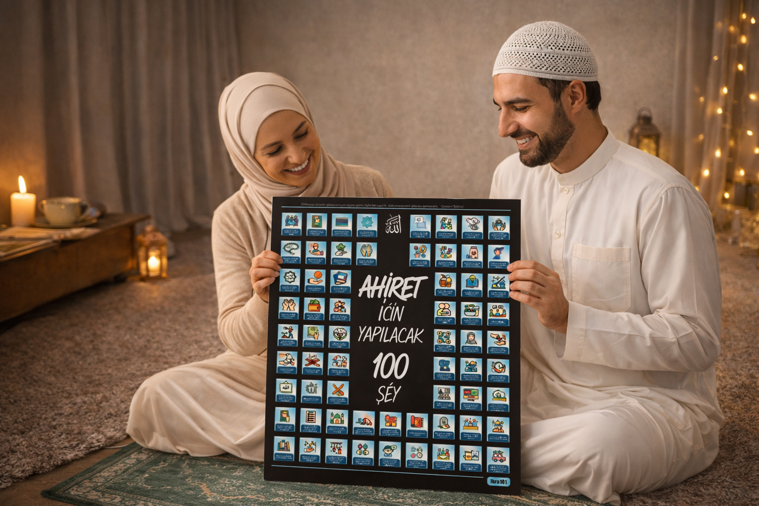 Ahiret için yapılacak 100 farklı manevi adımı içeren, kazı-kazan mantığıyla ilerleyen özel tasarım bir posterdir. Günlük hatırlatma ve alışkanlık kazandırma amacıyla kullanılır.