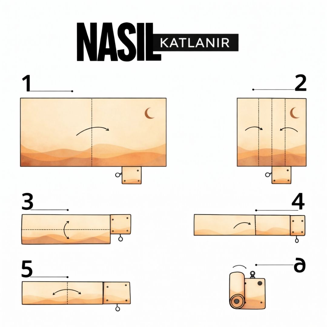 Seccadeyi katlı halinden açarak düz bir zemine serin. Namaz sonrası tekrar katlayarak çantanızda kolayca taşıyabilirsiniz. Temizlik için nemli bir bezle silmeniz yeterlidir.